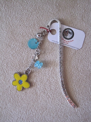 Mais um marcador de livro infantil, com flor amarela e acrílicos azuis :)