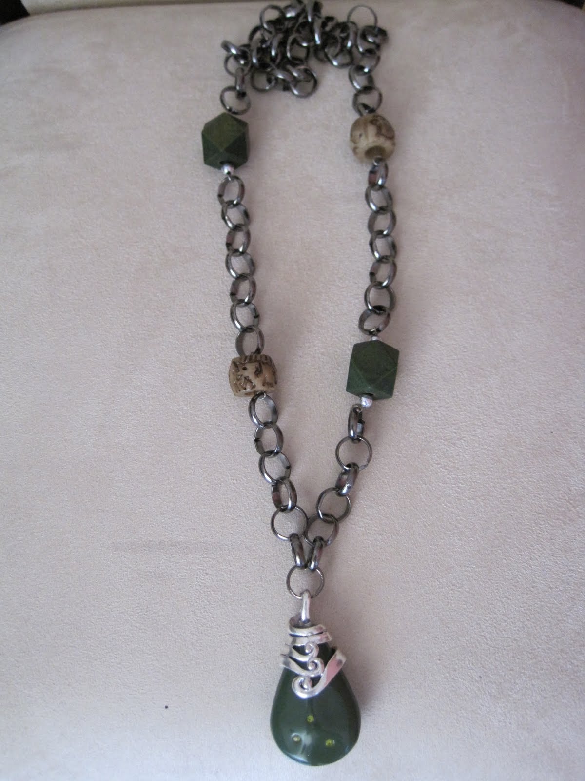 Esta foi a prenda de anos de uma amiga, que gosta bastante de bijutaria e que já tem outras peças minhas. Acho que ficou engraçado, não sabia bem o que fazer com esta corrente maior e gostei do resultado final, acho que ficou a cara dela :P